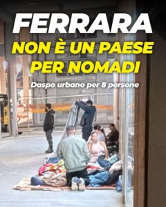 Un ‘accampamento’ di senzatetto con 8 Daspo, così è stata definita la presenza di senzatetto a Ferrara. E’ la sintesi di quanto avvenuto nel pomeriggio di giovedì 13 novembre. Come riferito da Fabbri, l’amministrazione ha ricevuto la segnalazione di un bivacco presente in piazza Gobetti, prossima alla riqualificazione.